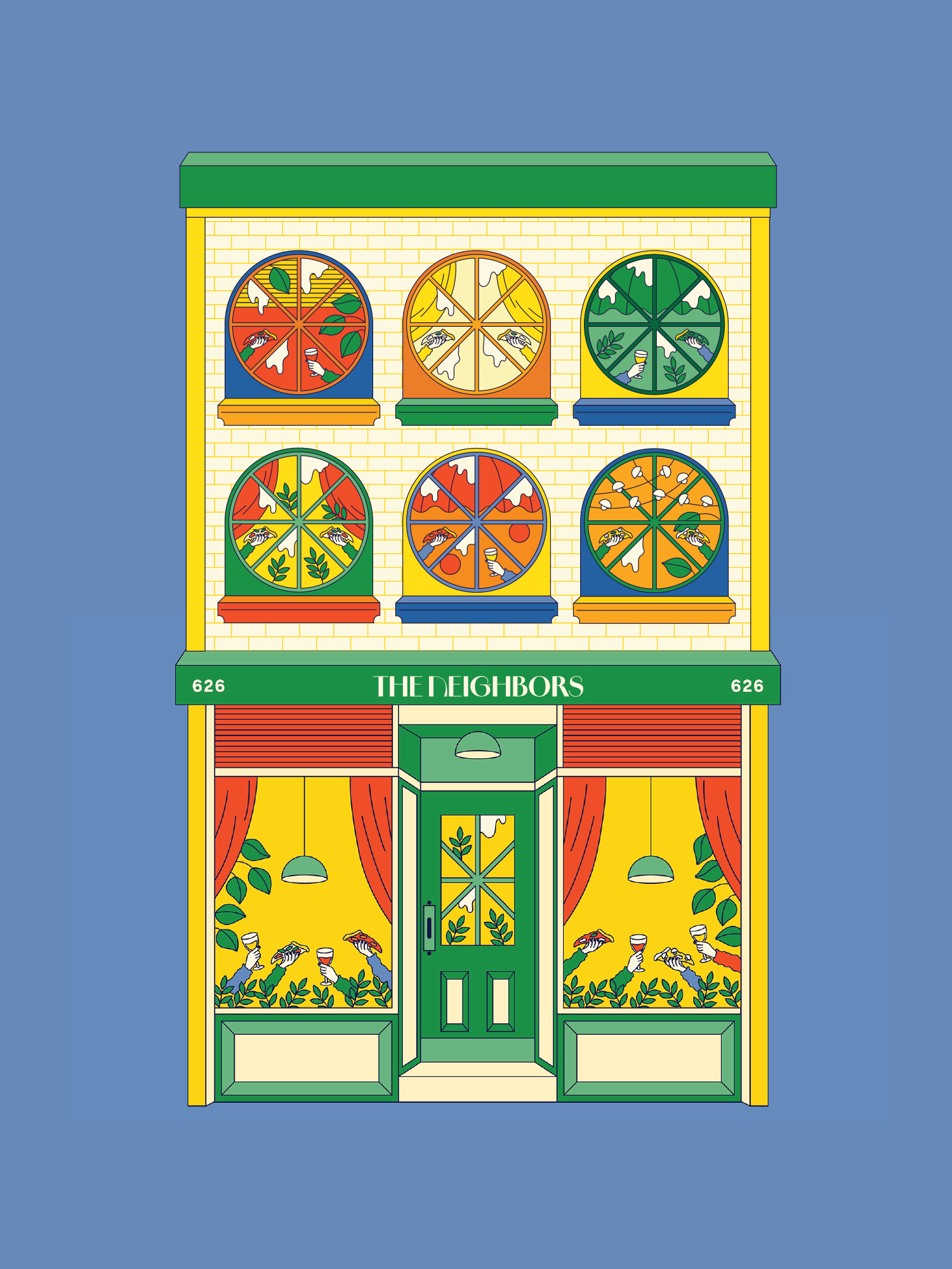 With a name like The Neighbors, several ideas came to mind. The brand revolves around the inspiration of the three-story apartment buildings of West Village and the idea that every household has its favorite type of pizza.
